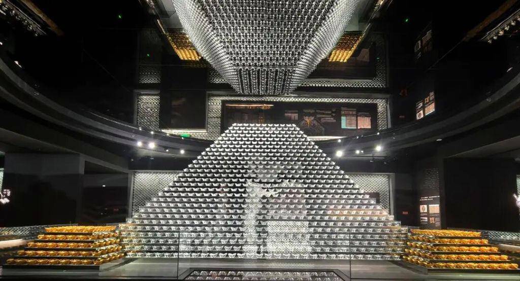 展厅的展陈设计别具匠心,大量镜面材质的运用让文物陈列突破了传统的柜展模式,视觉效果极为震撼,富有沉浸感。